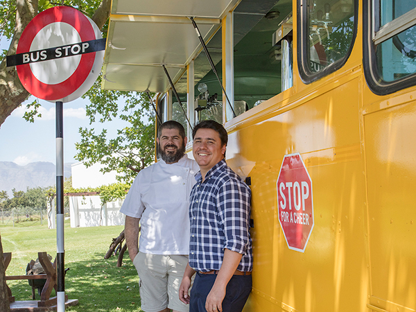 Chef Nic van Wyk is a busy man. The chef-patron of Bistro 13 recently took on Haute Carbriere Cellar Restaurant with Westley Muller, and on 1 December, the Kokkedoor judge is set to open a brand new outdoor restaurant at Stellenbosch Vineyards. Called The Bus Stop, the casual eatery is built around a yellow 1980 Bedford bus. Outdoor seating made from refurbished bus chairs and bus-shelter inspired booths will surround it on the grass.