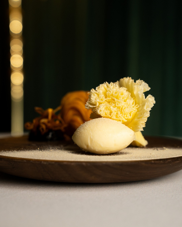 At DUSK, Callan pushes boundaries with imaginative touches that surprise and delight. Beyond courses inspired by Formula 1, he recently served a dish in ceramic dog bowls engraved with the names of local rescue dogs – a whimsical initiative that raised awareness and donations, showing that fine dining can be both thoughtful and unexpected.