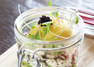 Don’t miss: the Alaskan crab cocktail with corn sorbet, avocado mousse, chiffonaded cos.