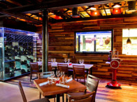 Face-brick, a wood-panelled feature wall, and wine bottle lights are some of the stand-out ...