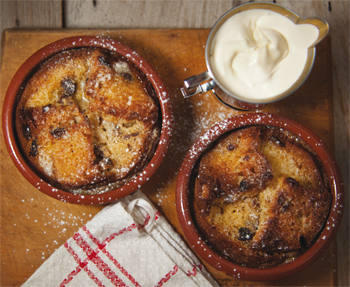 Bake the pudding for about 35 minutes or until the custard has set and it has turned a mouth-watering golden colour. Serve with a dusting of icing sugar and a large dollop of lusciously decadent thick cream.