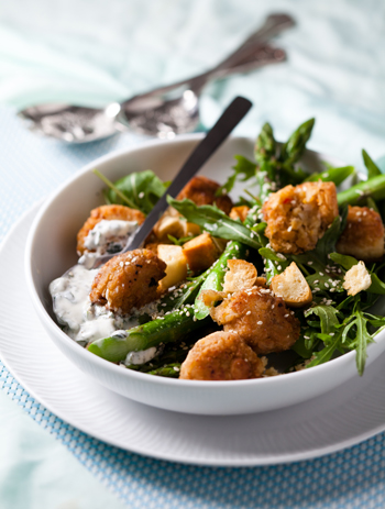 Golden crunchy falafels make a wonderful vegetarian supper. Serve them with steamed asparagus spears and fresh rocket.