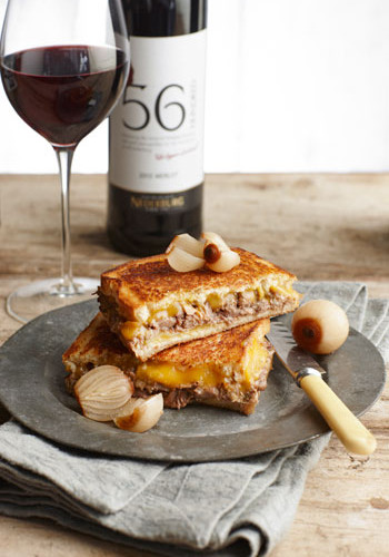 “Nothing shouts comfort food more than a warm gooey grilled cheese sandwich,” says Stéfan Marais of Societi Bistro. This recipe takes things up a notch with beef short rib braised in Nederburg 56HUNDRED merlot, plus and a few pickles.