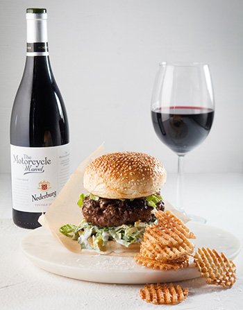 Serve this incredible burger with sour-cream slaw, waffle fries, and a glass of Nederburg's The Motorcycle Marvel, a Rhone–style red with spicy, peppery berry and sweet fruit notes.