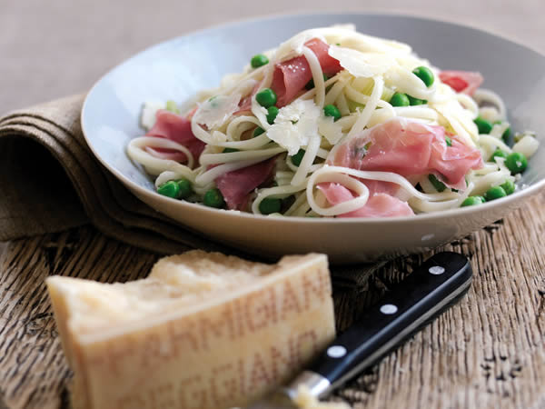 Toss a quarter of the sauce through the pasta and spoon into pasta bowls. Spoon the rest of the sauce on top and garnish with the Parmesan shavings, chopped tomato and parsley.