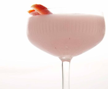 Muddle the basil and grapefruit in a mixing glass. Add the rest of the ingredients and shake with ice. Strain into a glass filled with cubed ice. Garnish with strawberry stars.