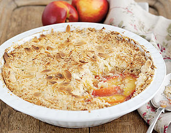 Juicy, tart nectarines pair beautifully with coconut in this easy crumble recipe. You can also substitute plums for nectarines.