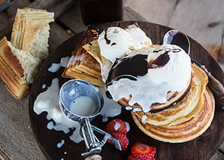 Mix sifted flour, baking powder, salt and baking soda in a large bowl. Add the eggs, buttermilk and butter then mix well (you can just use a wooden spoon or big whisk for this). Grease the jaffle irons with some butter, then place over moderate coals. Once they’re hot, ladle waffle batter onto the jaffle irons, close them up and wait for the waffles to be crisp, golden and cooked through. (You’ll need to turn them over a couple of times.) Take them out the jaffles, keep warm on the side and repeat until you’ve used up all the batter.