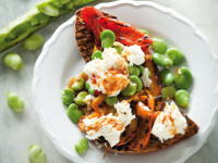 Sweet roasted peppers, creamy ricotta and broad beans: this vegetarian sandwich makes the perfect