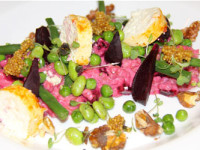 A wonderful warming winter recipe, this risotto is served with glazed baby beetroot, creamy chevin