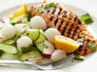 Sweet, tart litchis, fresh coriander, and wedges of lime make a zingy accompaniment to salmon. This ...