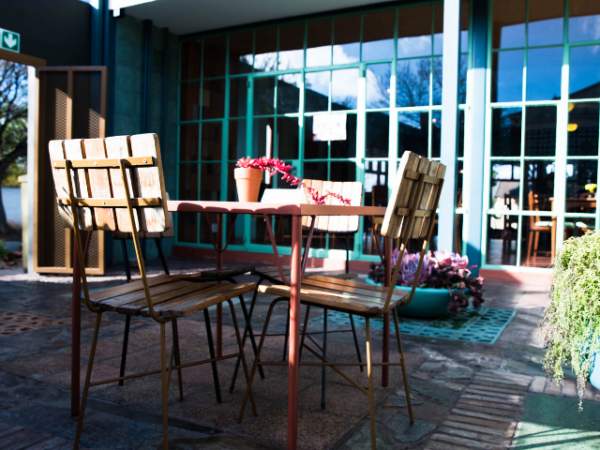 There's a breezy, retro-chic new kid on the block, tucked into a little corner of Brixton, offering value-for-money breakfast and lunch options in a perfectly designed light-filled space with quirky little touches that throwback to the kitsch elements of the 70s and 80s. If you're over 35, nostalgia may be kindled by the familiar ugly-funky chairs or the naughty knotty pine cladding or the breeze blocks themselves; while the under-35s will still appreciate the hip. happening vibe, the budget-friendly food choices and the free wifi. On my first visit I met a friend for brunch at 11 am and we remained there through a late lunch till closing time at 5pm. That ensured my return. Repeatedly. With an emphasis on fresh, healthy food balanced by just-sufficient choices in the comfort food and wickedly decadent departments, the menu invites patrons to pick and choose and linger awhile. During the week, this is a perfect coffice. On weekends, it's a lekker spot for a leisurely brunch with friends and family. The colourburst mural and succulent plants in the sun-drenched courtyard are harbingers of a parade of succulent aromas, sights and flavours. The colourful palette is created by visually enticing food presented on an array of fabulously mismatched crockery placed on the tile-topped tables. From fragrant leaf tea poured into a paper-thin antique bone china cup and saucer (which I instantly coveted), to creamy oatmeal topped with the autumnal hues of caramelised nuts and dried apricots offered up in turquoise porcelain that evokes Miami art-deco, Breezeblock delivers a feast for the senses. With neither pretension nor fancy embellishments, it's refreshingly down-to-earth and offers unobtrusive yet attentive service. One of the cheapest meal options is a melodic pairing of avocado and harissa on homemade buttermilk toast; another is an aromatic chickpea and spinach stew. Both are transcendental taste experiences. Proving that tasty wholesome food needn't cost the earth. The warm salad of lentils, yellow cherry comatoes, sundried tomato, chickpeas, bell-pepper and carrots, topped with optional feta (other topping options are blue cheese or bacon) is a winner. As are the Lebanese-style eggs and the variety of omlettes on offer. The sandwich options, made with health or buttermilk bread, are pretty damn good too. As is the coffee, Have a sweet-tooth? Treat it with some pancake love. Topped with crumbled speculaas (Dutch spice cookies) and ricotta; or mascarpone and berries. Savory options are also available if sweets leave you cold. I could go on singing the praises of the breeze that wafted this new hangout into my 'hood; but I'd rather just urge you to come see for yourself. I'll probably be there when you do.