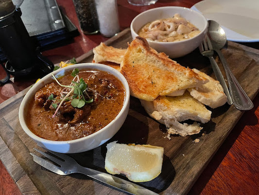 The food was very average with some dishes such as the grilled calamari very poor, the calamari was tasteless and drenched in butter. The steaks (sirloin and rib-eye) were ok and well cooked but the accompanying sides and sauces were awful. The mushroom and red wine sauce turned out to be a thin cream based sauce and the roquefort and garlic sauce was almost unpalatable, enough garlic to keep all of the vampires out of Durban for a year. The side veggies would probably have been good the day before....