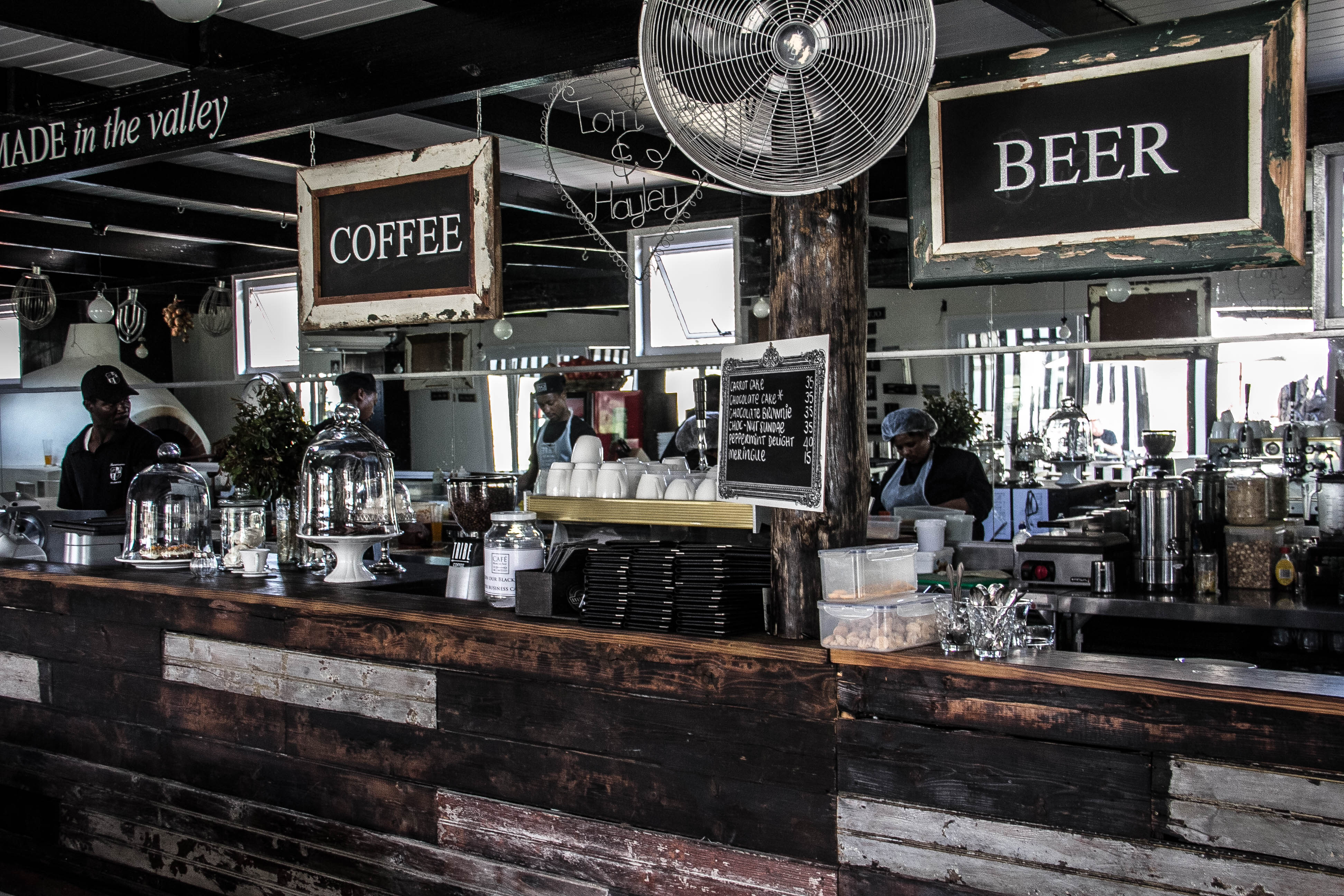 Set in-and-amongst the plum orchards, overlooking the vineyards and the majestic Stellenbosch Mountains, Café Blanc de Noir truly is a unique experience. The rustic chic décor and the friendly staff create an atmosphere for happy and relaxed dining. The menu focuses on fresh, simple and quality ingredients. Rustic wood-oven pizzas, “family secret” cakes, award-winning Brenaissance wines and craft beer are what they specialize in. Pop down after work, for a family outing, a birthday celebration or a cappuccino break while on a cycle through the Valley.