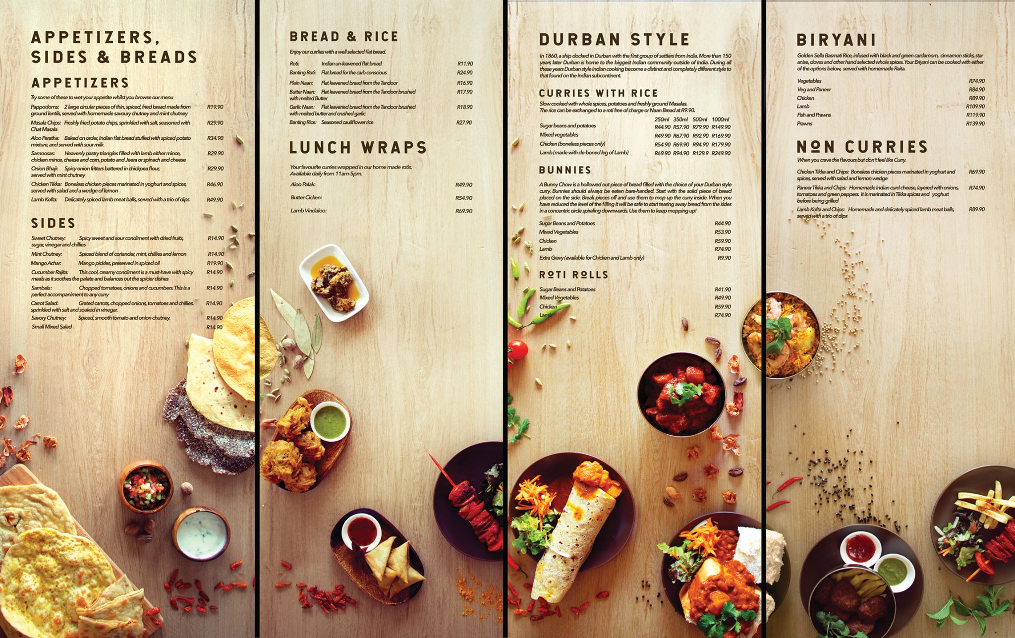 A Fresh, Contemporary take on Indian Dining and Take Aways. You can enjoy both Durban style and Not Indian specialities expertly prepared by some of the best Indian chefs in Joburg, using the best quality ingredients.