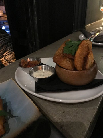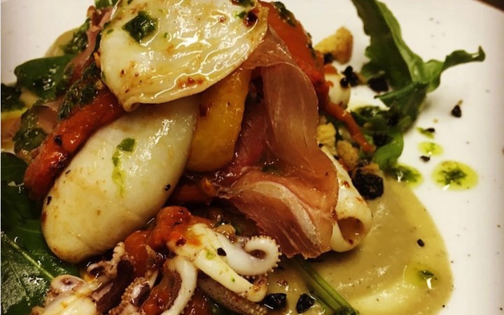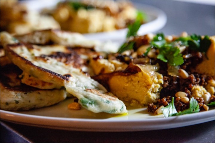 Comfort food and more adventurous dishes are served on small plates, perfect for sharing or assembling into a full meal.