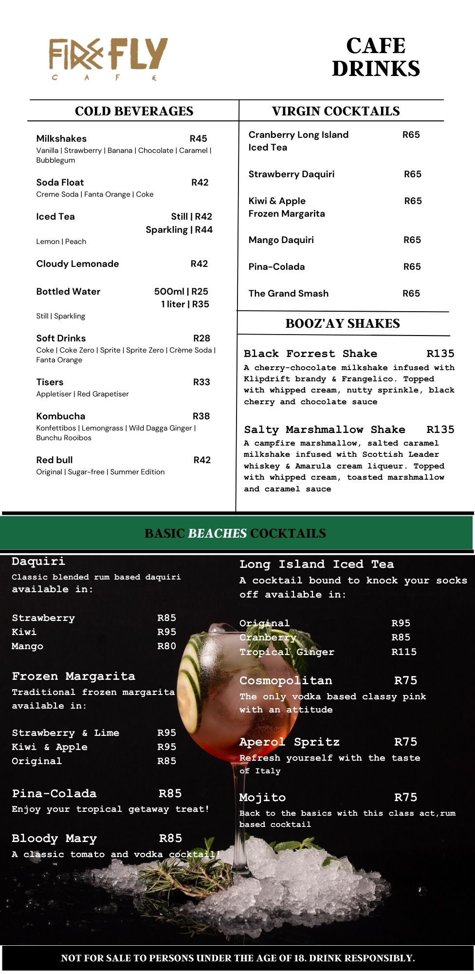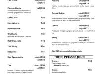 Menu - Drinks, Breakfast and Lunch menu.