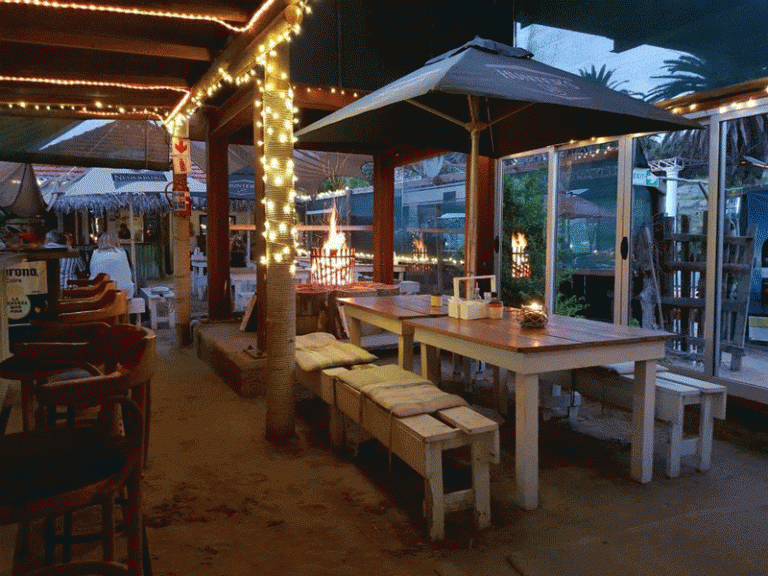An authentic and quality experience presented in an outdoor restaurant setting reminiscent of the French Riviera with beach sand underfoot, covered tables, an open fire and 180 year-old date palm trees enclosed and soon to be licensed, with food cooked with passion and excellent service.