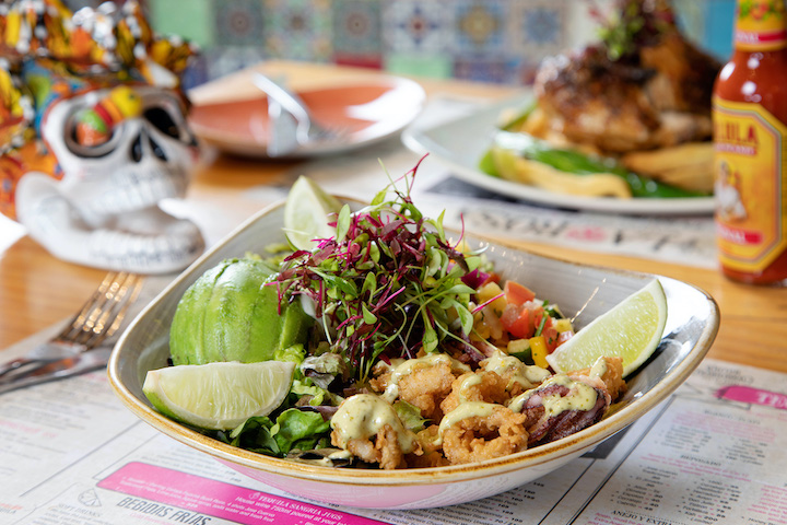 An exciting modern Mexican restaurant in a large double volume space, with a Tequileria (tequila cocktail bar) upstairs. Serving all the Mexican favorites, Antijitos, Aperitivos, Ensaladas, Tacos, Burritos, Enchiladas, Fajitas and more. Over 40 tequilas and many tequila based cocktails to choose from.