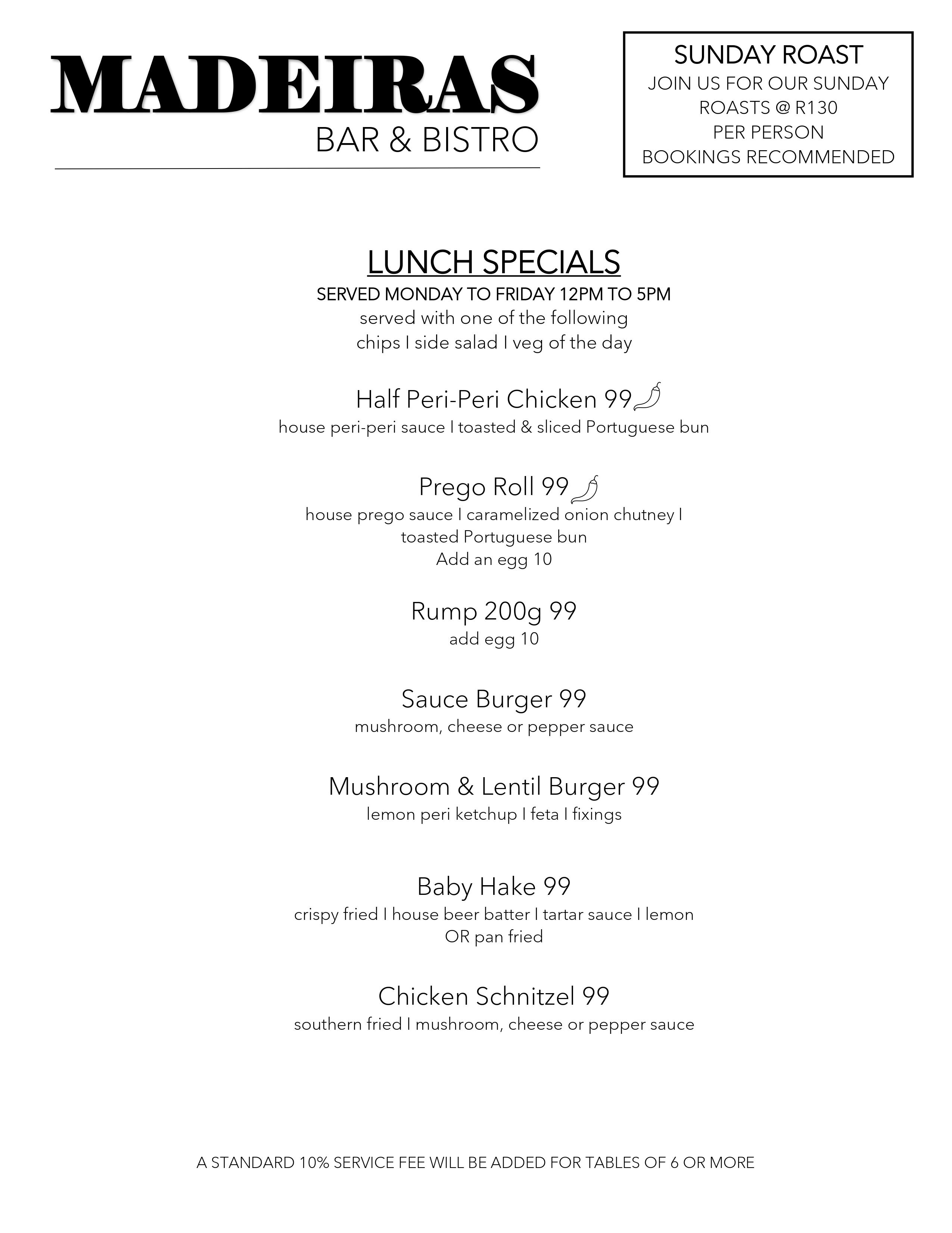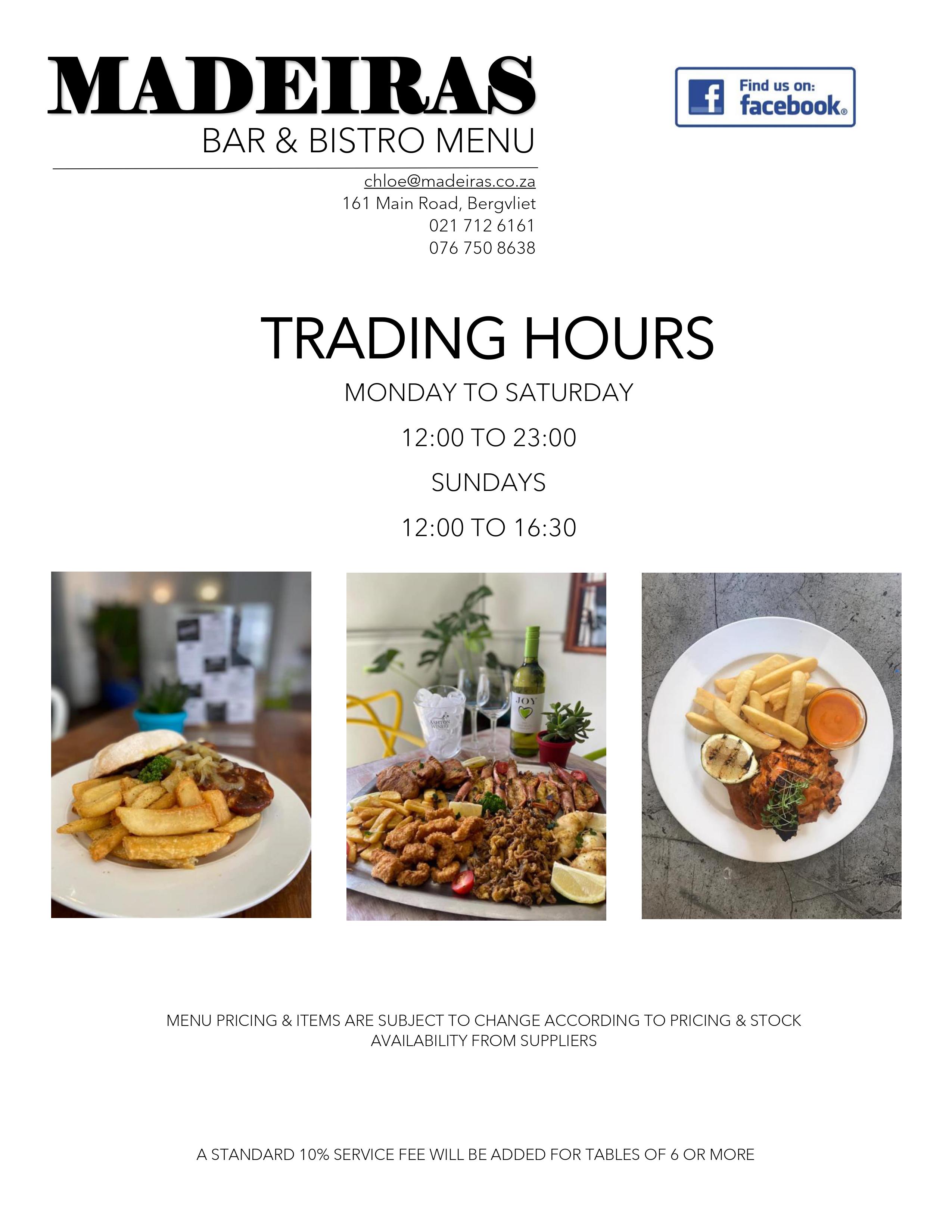 Ate at Madeira's last night (20 April 2013) - absolutely disgusting! Waiter should be working in a bank. No music,so no atmosphere, old musty smell on everything from napkins to the water and food attrocious! Prawns dry and mushy and trinchada tasted like cuts of meat dipped in a spur basting sauce. Portuguese my butt! Do not waste your money! Revolting!