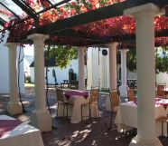 We popped in for lunch at this lovely estate, and were impressed by the quality of the food. We were only looking for a light lunch, so ordered two starters from their new winter menu: a crumbed fried brie dish with beetroot and chevin coated in almonds, and peri-peri chicken livers. Both were delicious and filling - for starter portions. There were also delicious, freshly baked rolls and butter, and we enjoyed sitting outside surrounded by the old buildings. We also spied a fireplace inside - will keep that in mind for chillier winter days.