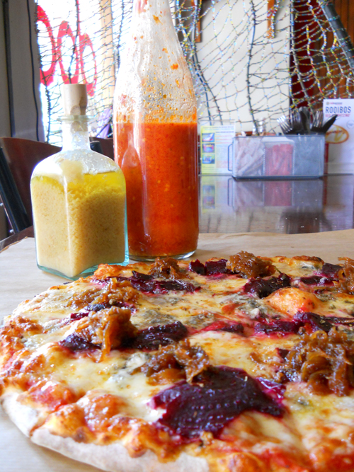 Thin crispy pizza bases and ordering halves of two pizza's as one pizza.