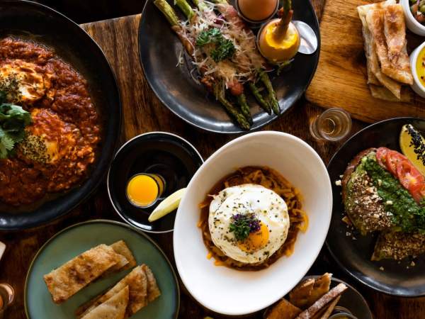 As for our food, we took the Red Shakshuka (I mean how can you not order it - 3 eggs poached in a middle eastern style tomato sauce with Hummus, Green salsa and Yemeni flat bread????), the Breakfast bun (Steak & Bacon Cheddar balls with smoked back Bacon, crispy fried Egg, Pablo's mayo on an English muffin with Triple cooked chips), Salmon Scramble (eggs scrambled in butter with smoked salmon, black sesame and coriander) and the Granola Yoghurt fruit bowl (Homemade Granola with fruit, real Greek yogurt, honey and toasted cashew and coconut)