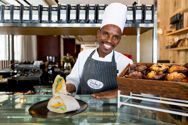 Ruby’s is a bakery and coffee shop with al fresco and inside seating. The aroma’s captures everything good: From the special blended Ethiopian/Tanzanian coffee, the various cakes and all the fresh pastries.