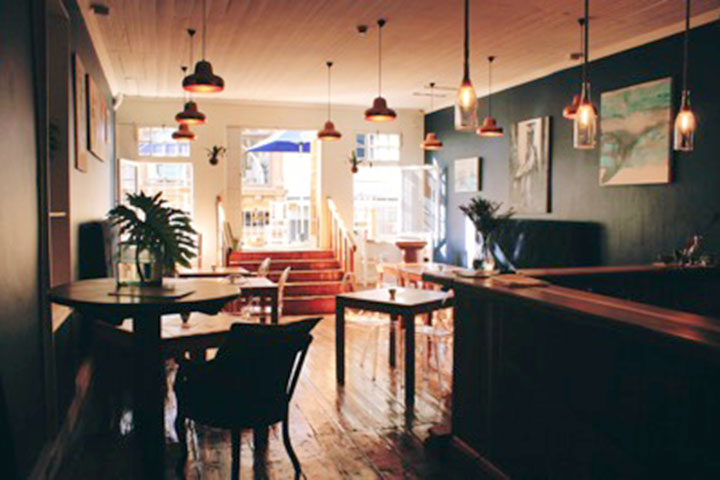 The space echoes owner, Rickma’s Coxon's eclectic style, blending the multi-cultural vibe of inner-city Cape Town with bespoke cocktails, contemporary Delft accents, bronze light shades, up-cycled pendant lights on eco-rope, varnished wooden floors, high back sofas in midnight blue velvet and African kiaat. Contemporary design and nautical elements rub shoulders with the historic features of the heritage building.