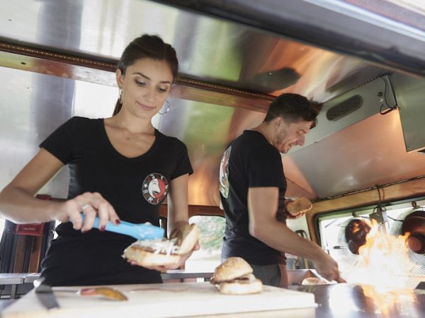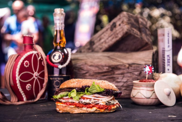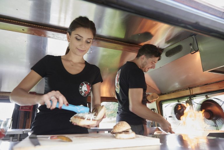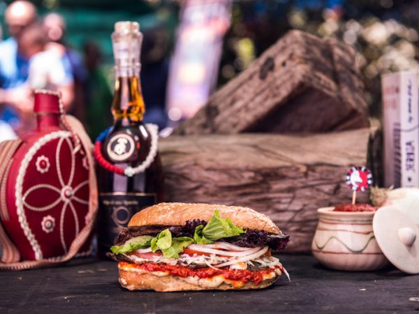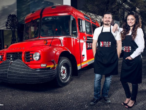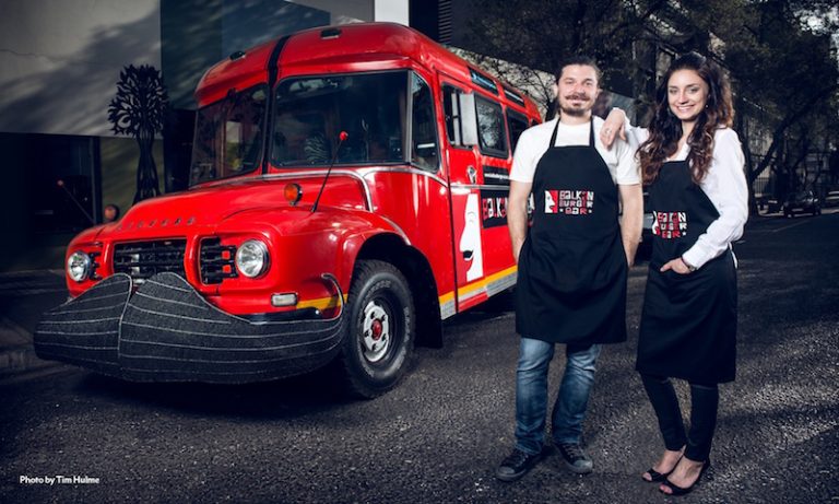 The Balkan Burger is an Ivanovic family recipe using heated "somun" bread, infused with meat flavour, a fold-over patty (unique family technique) and healthy portion of veggies is added to the mix and topped off with a traditional, red pepper- based sauce. This establishment is known as a Serbian inspired burger joint. To track the trucks movements, follow them on Twitter twitter.com/balkanburgerbus