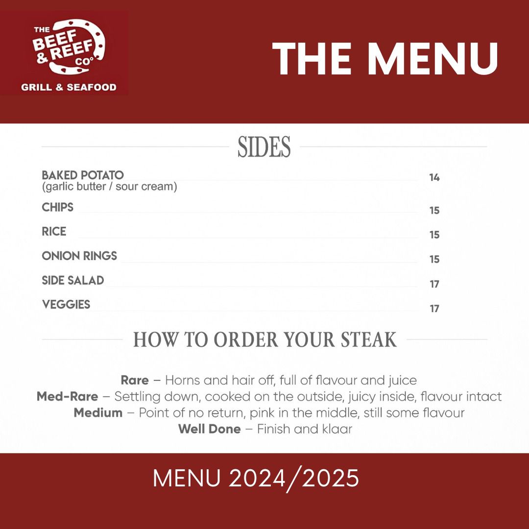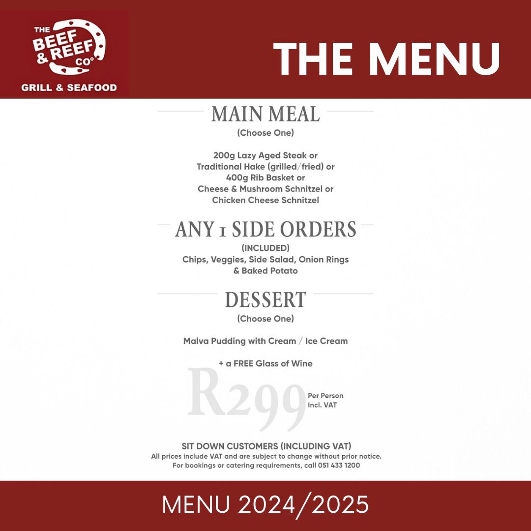 Beef and Reef Co. is a popular steakhouse in Bloem. They pride themselves in their food and service.