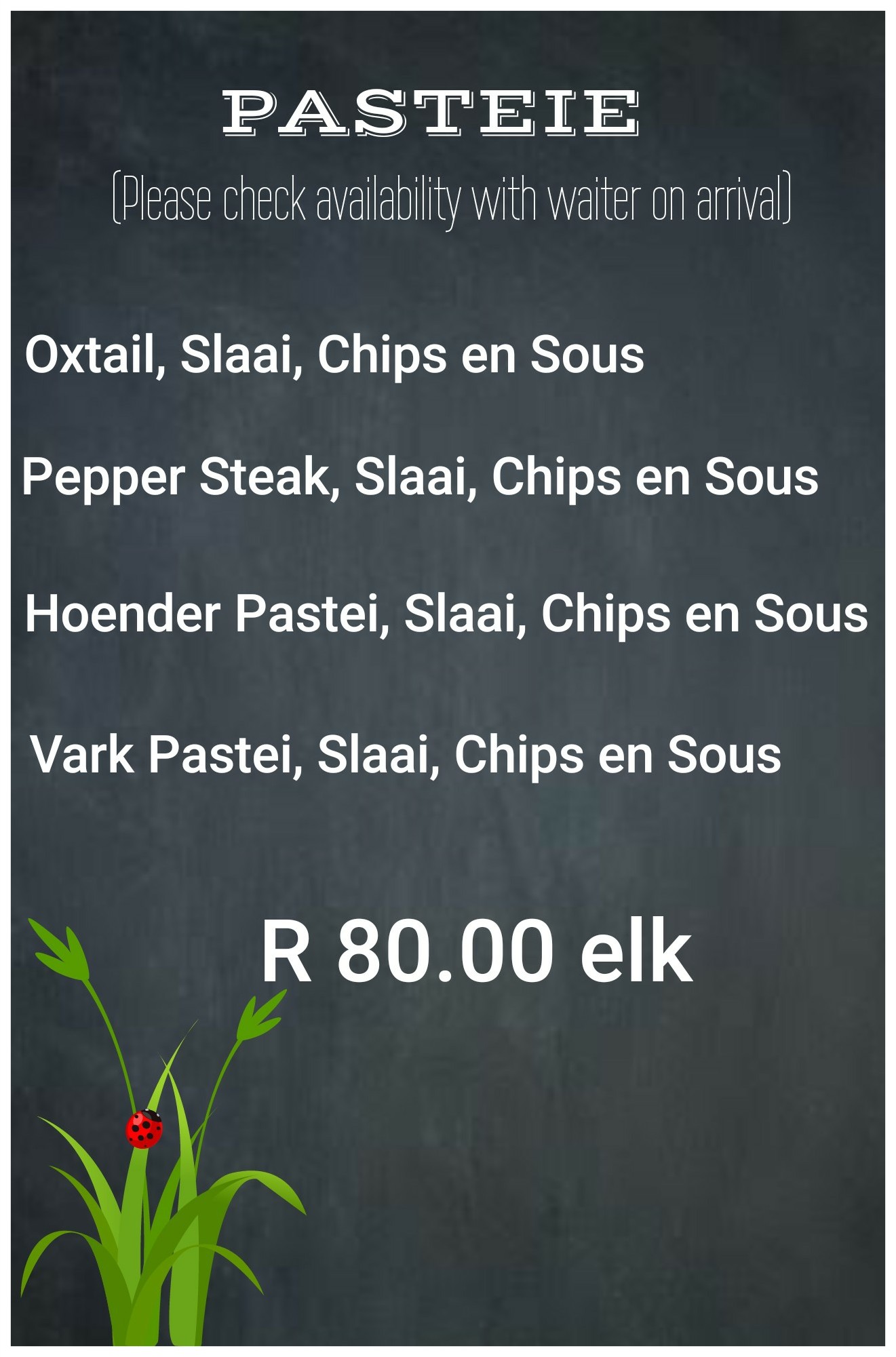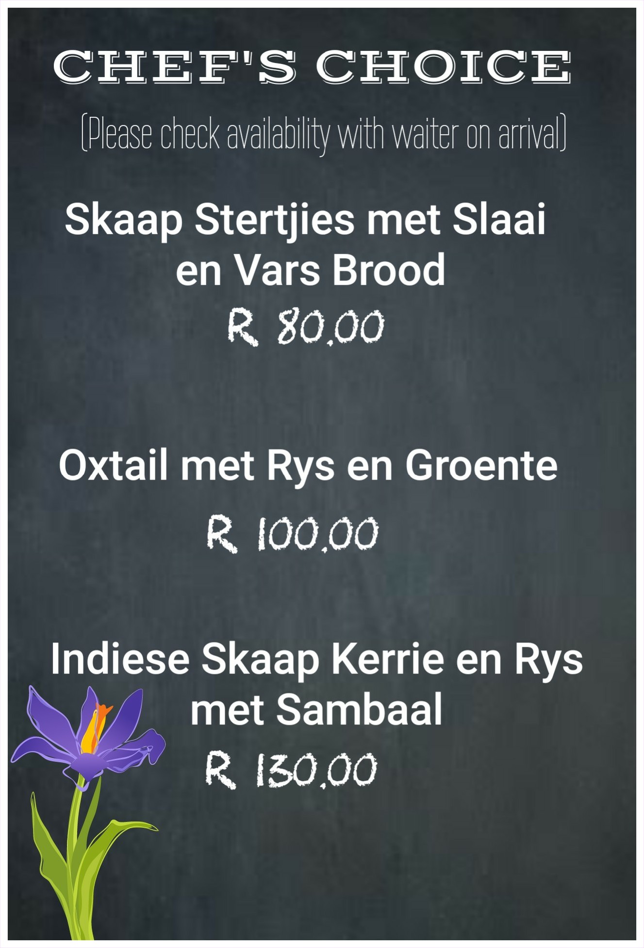 This is a proudly South African restaurant, focusing on preparing authentic and wholesome dishes like oxtail and leg of lamb with rice, T-bone steaks with salads or fries, pumpkin fritters, caramelized carrots and more.